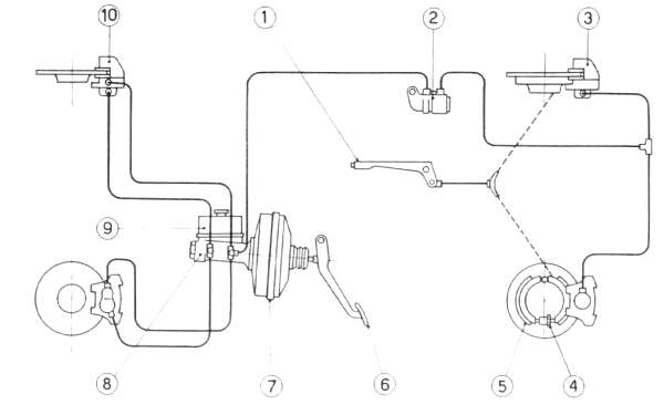 Serbatoio freni idraulici: Controllare periodicamente che il livello nel serbatoio si mantenga a livello massimo. Il livello deve abassarsi molto lentamente per il ricupero automatico del gioco dovuto al consumo delle guarnizioni di attrito dei freni. |